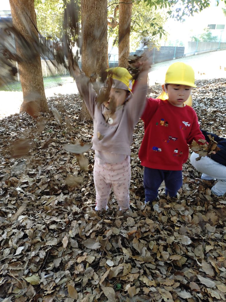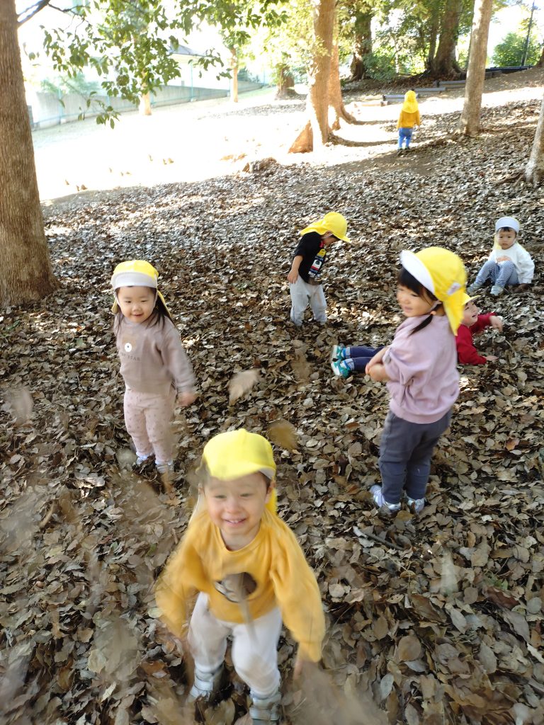 どんぐり拾いや落ち葉遊び、自然の中で楽しく過ごせる季節です。