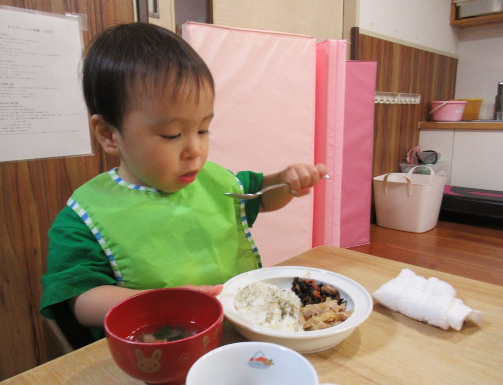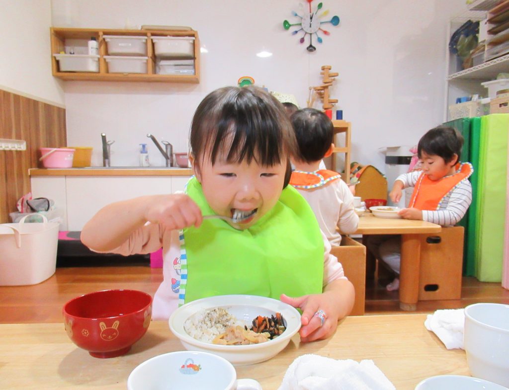 「おかわり!」美味しいご飯とふりかけをもりもり食べました。